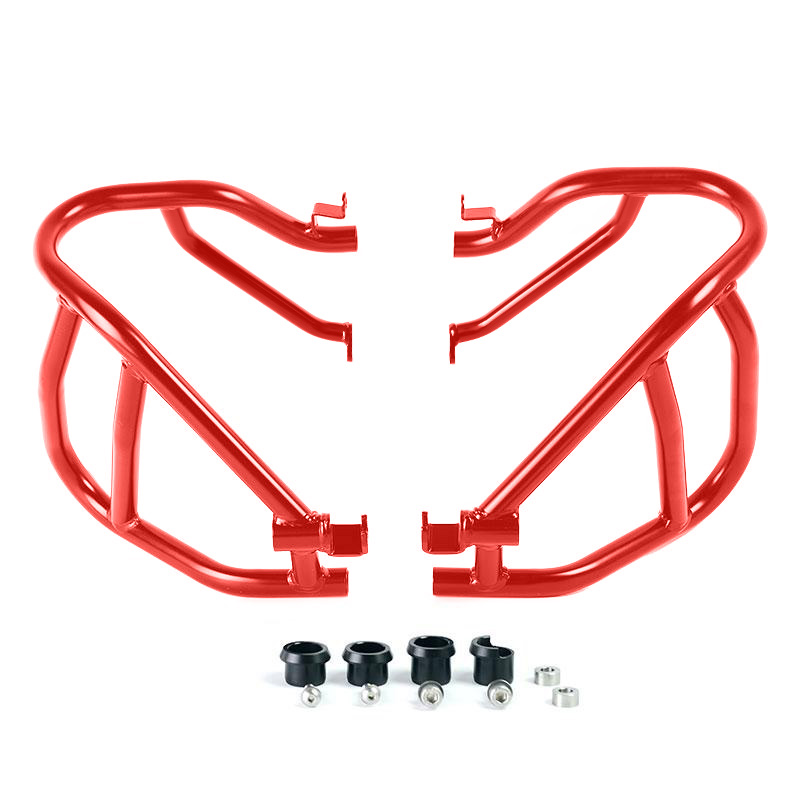 Realizzata in acciaio con tubo da mm 25 spessore mm 2 trattato con vernici a polveri ad alta resistenza. La maggior parte dei lavori di manutenzione può essere eseguita senza lo smontaggio della barra. Molto belle ed eleganti, definiscono in modo perfetto le linee della moto. Vengono fornite di tutto il necessario comprese le istruzioni di montaggio.