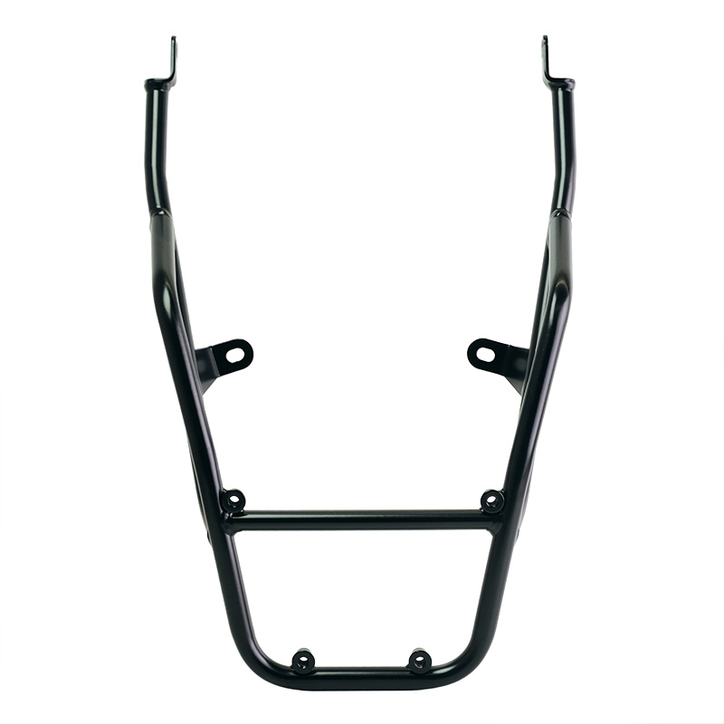 Se volete viaggiare con la vostra Royal Enfield Bear 650 con un bauletto rigido oppure con un bagaglio importante questo portapacchi è quello che fà per voi! Completa la parte posteriore ed è provvisto di comode maniglie per il passeggero. Robusto e pratico può alloggiare sia la piastra codice: U108 che la piastra codice: AL5 per il bauletto in alluminio tramite i 4 fissaggi predisposti. Disponibile con finitura a polveri epossidiche ad alta resistenza di colore nero opaco. Ottimo anche per avere più piano di carico con borse morbide.