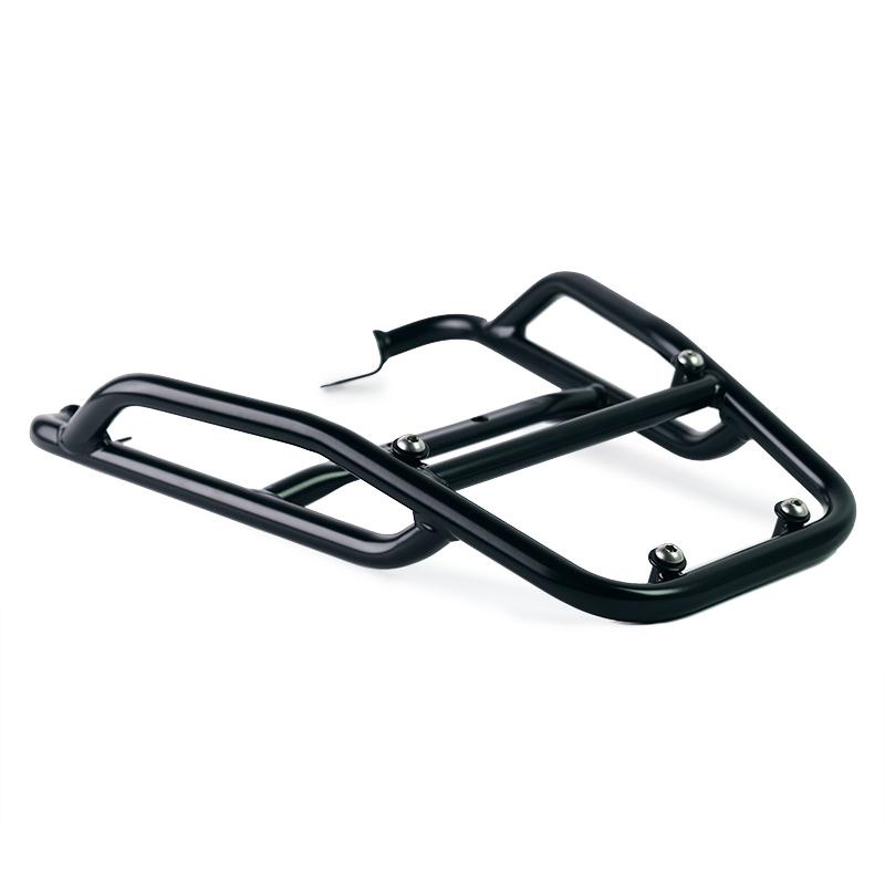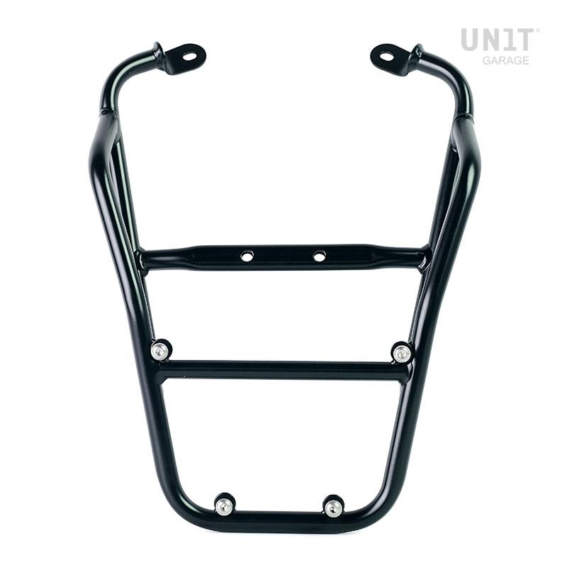 Portapacchi realizzato in tubo di acciao con finitura nero opaco a polveri epossidiche. Completa la parte posteriore ed è provvisto di maniglie per il passeggero. Si fissa molto semplicemente al telaio della moto sui 4 punti di fissaggio previsti da Fantic Caballero 125-250-500. Robusto e pratico completa l'estetica della moto.