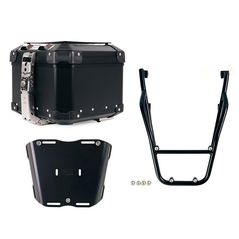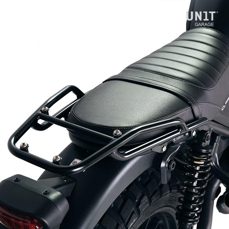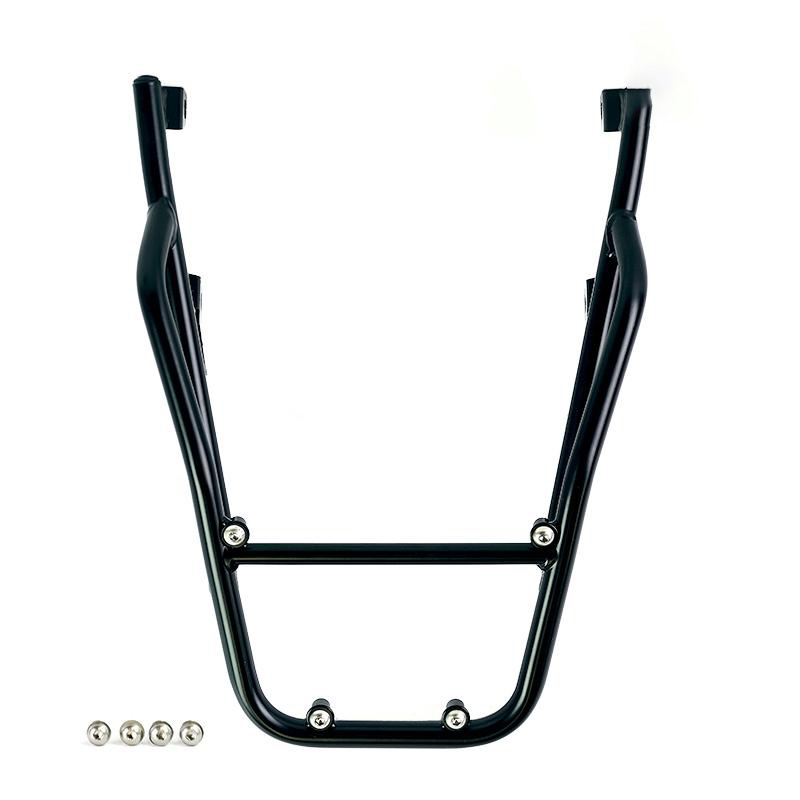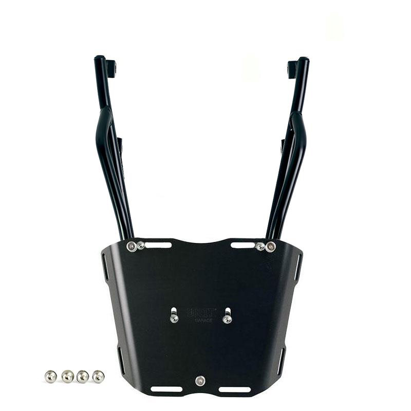 Completa la parte posteriore ed è provvisto di comode maniglie per il passeggero. Robusto e pratico può alloggiare sia la piastra codice: U108 che la piastra codice: AL5 per il bauletto in alluminio tramite i 4 fissaggi predisposti. Ottimo anche per avere più piano di carico per borse morbide montando la piastra Codice: AL13 In questa versione è proposto con finitura a polveri epossidiche ad alta resistenza di colore nero opaco.