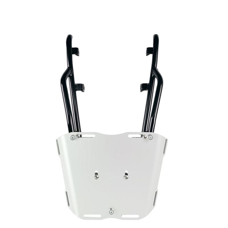 Completa la parte posteriore ed è provvisto di comode maniglie per il passeggero. Robusto e pratico puo' alloggiare sia la piastra codice: U108 che la piastra codice: AL3 per il bauletto in alluminio tramite i 4 fissaggi predisposti. Ottimo anche per avere più piano di carico per borse morbide montando la piastra Codice: AL13 In questa versione e' proposto con finitura a polveri epossidiche ad alta resistenza di colore nero opaco.
