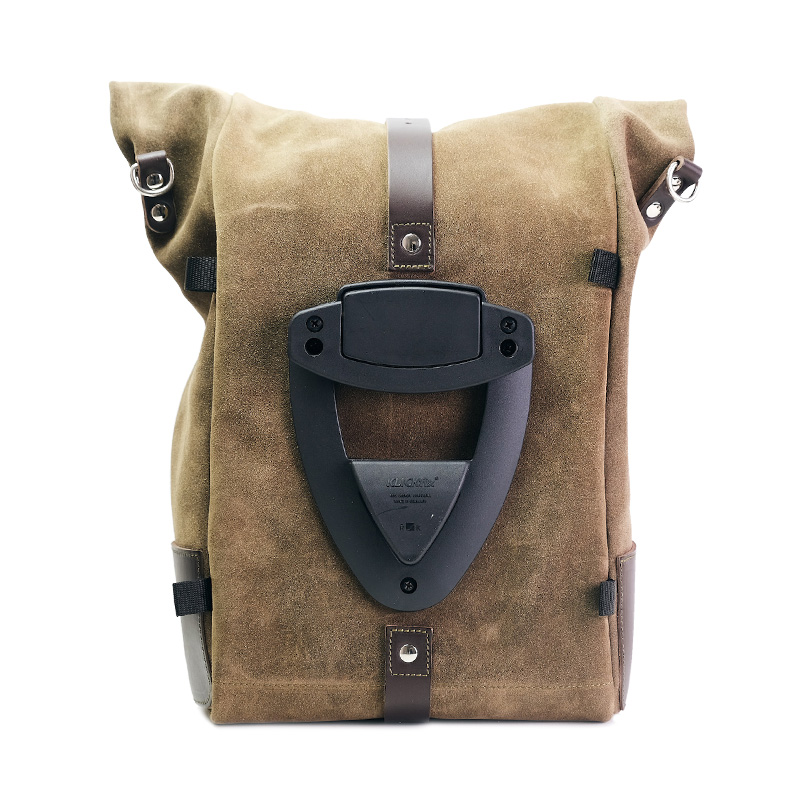 Curata nei minimi dettagli con finiture in cuoio da 3 mm, semplice e pura come i materiali con cui è stata costruita. Si aggancia velocemente al nostro telaio portaborsa con il sistema a sgancio rapido già incluso e montato sul retro della borsa, che è provvisto di serratura per il bloccaggio sul telaio stesso.
