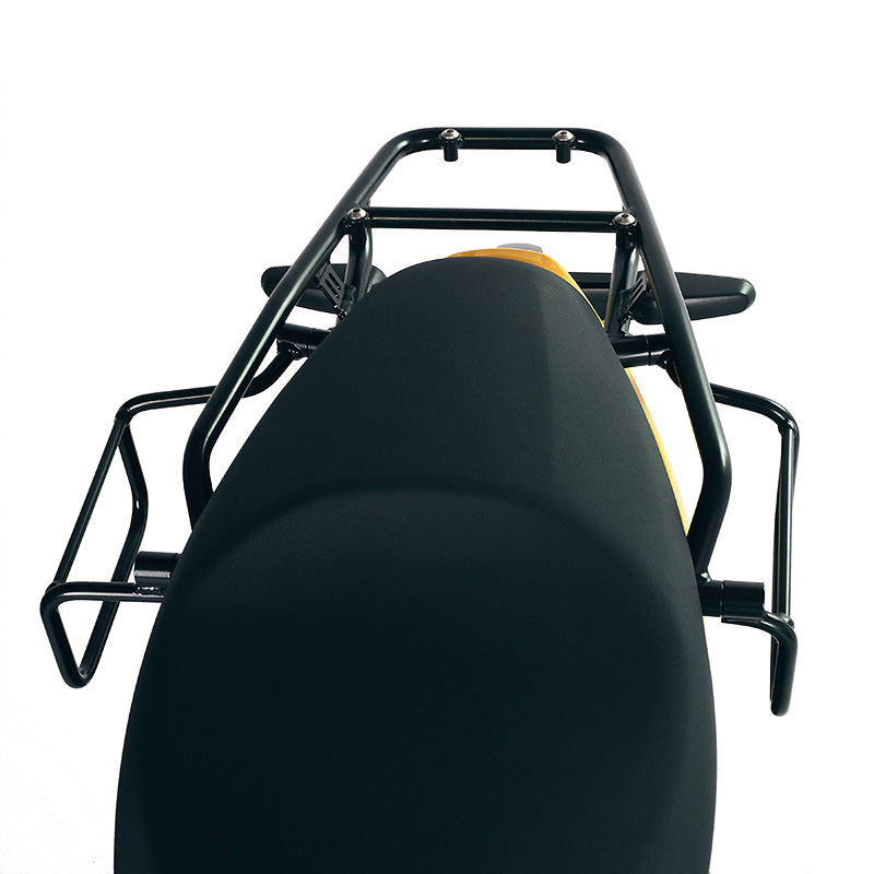 Disegnato sul telaio Royal Enfield si integra perfettamente con il resto della moto ed è realizzato in acciaio trattato con finitura nero opaco a polveri epossidiche