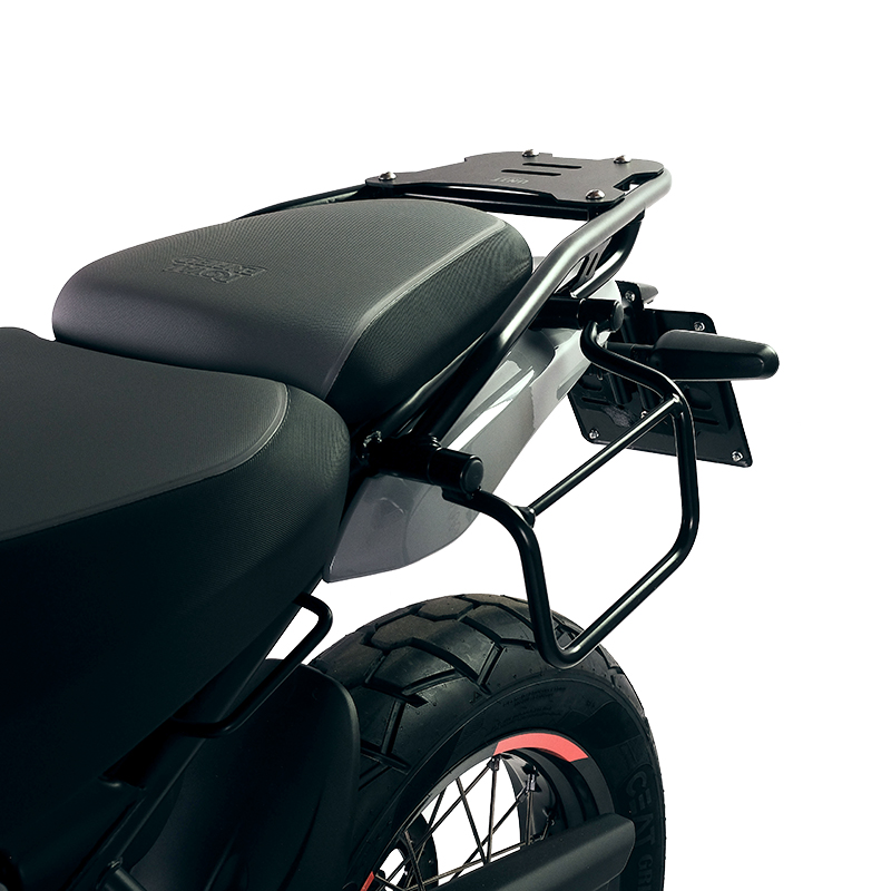 . Pronto per ospitare il nostro sistema di aggancio rapido, bello e minimal anche quando la borsa non è montata. Può essere usato comodamente con il passeggero a bordo ed è compatibile con i nostri portapacchi e con quelli originali.