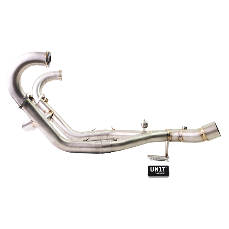 Kit collettori scarico in Titanio con saldature a vista e senza catalizzatore per modelli R12. Realizzati a mano, pesano 4,10 Kg in meno di quelli originali.