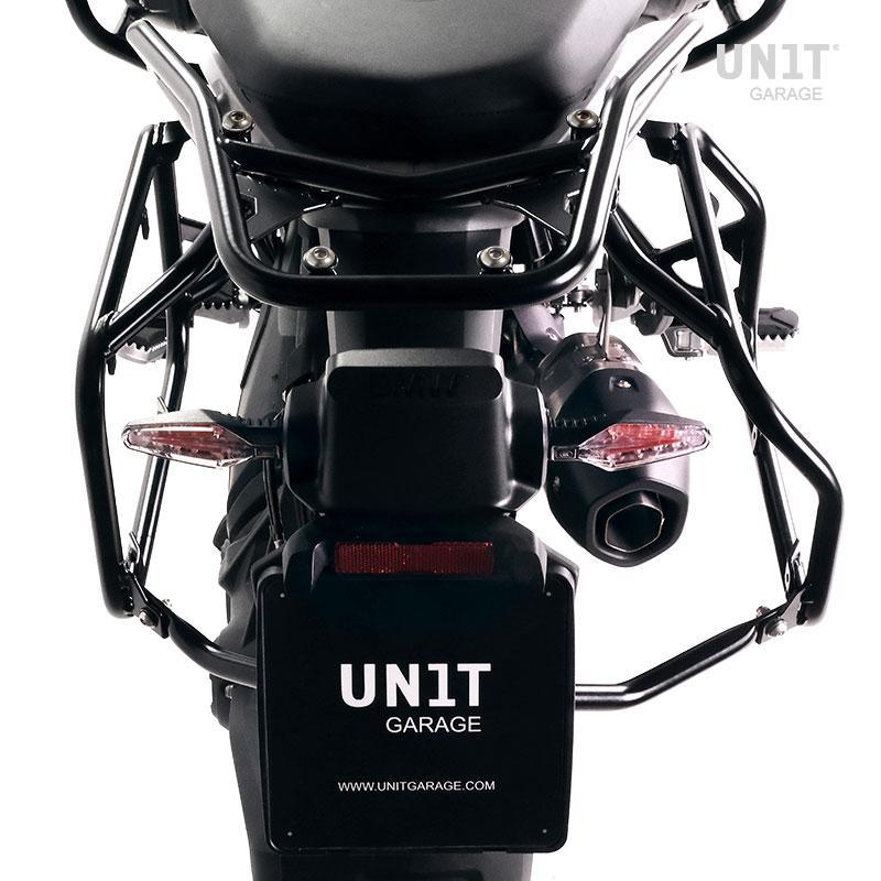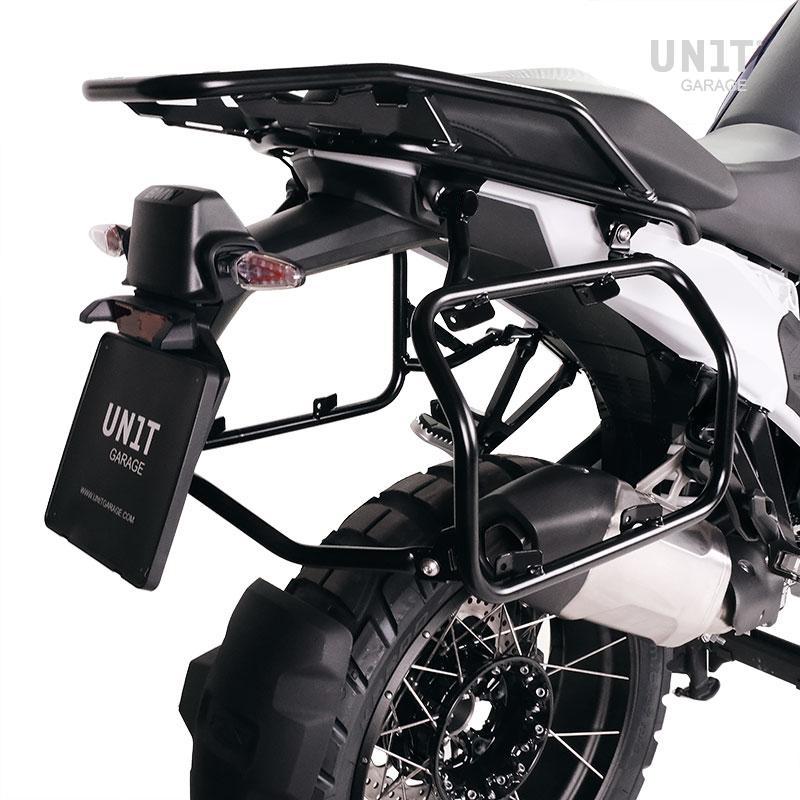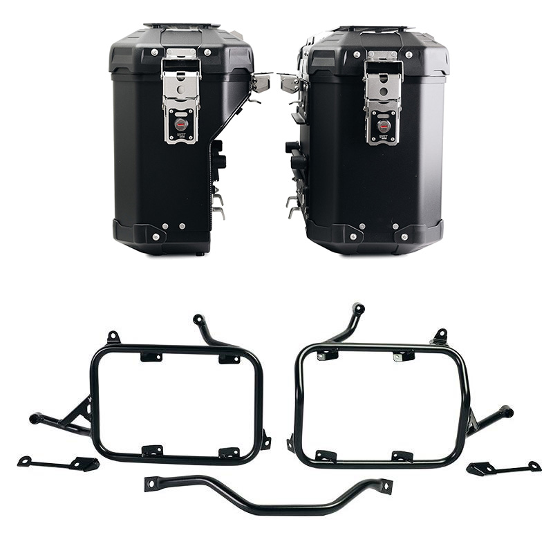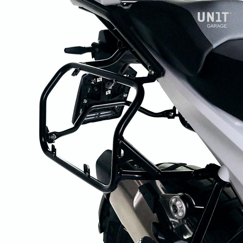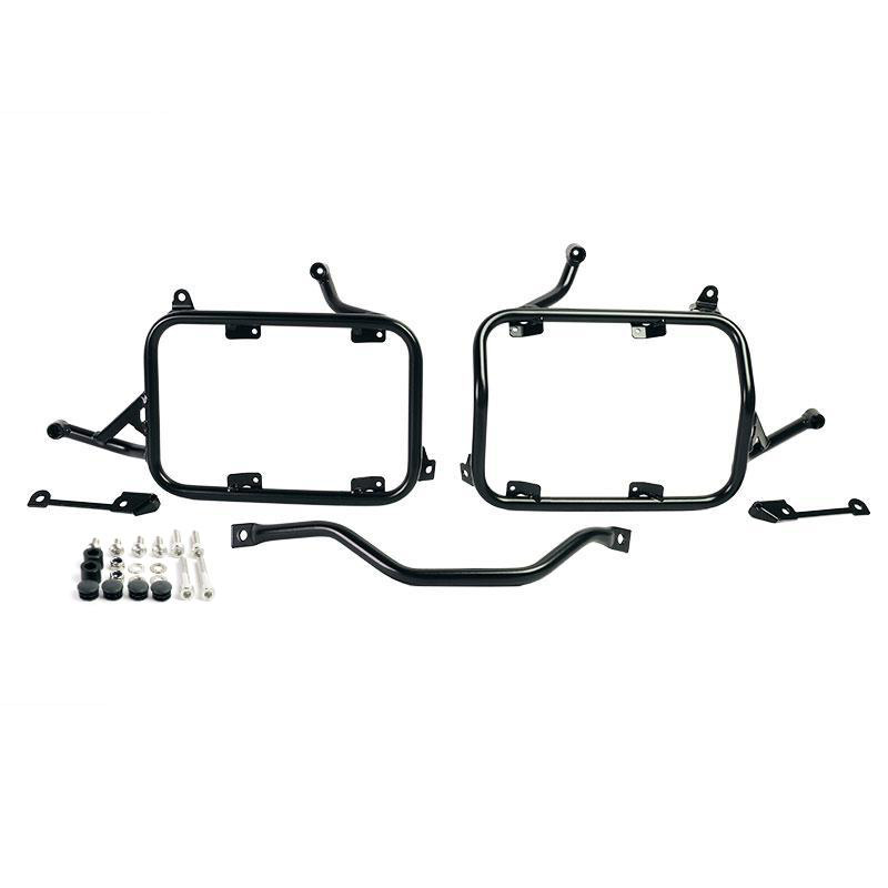 Questo set completo di telai realizzati in acciaio inox si integra perfettamente con il resto della moto. Viene fornito completo di kit di montaggio e viteria non sono necessarie modifiche. Si può montare sulla moto in combinazione con i nostri portapacchi (codice: 4004) con gli accessori originali BMW come il portapacchi o la maniglia passeggero.