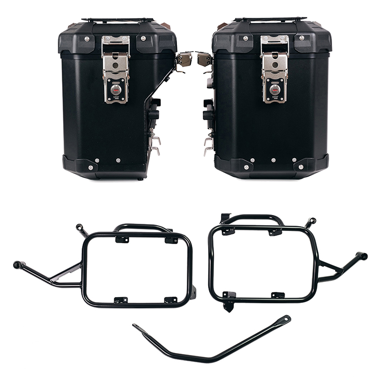 Questo set completo di telai realizzati in acciaio inox si integra perfettamente con il resto della moto. Viene fornito completo di kit di montaggio e viteria non sono necessarie modifiche. Si può montare sulla moto in combinazione con il nostro portapacchi (codice:4503). Possono essere usati comodamente con il passeggero a bordo.