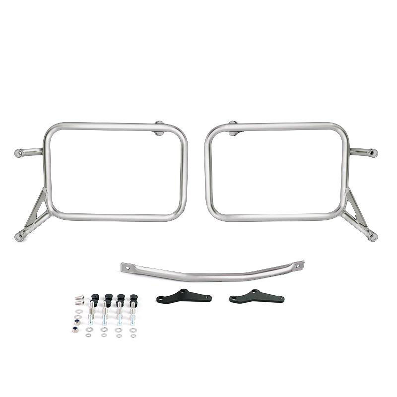 Questo set completo di telai realizzati in acciao inox vi consente di montare le valigie in Alluminio sui modelli R e GS. Si integrano perfettamente con il resto della moto. Pronti per ospitare le nostre borse in Alluminio nelle diverse misure. Vengono forniti completi di kit di montaggio e viteria. Sul modello GS non e' necessario sostituire le pedane passeggero con quelle del modello ADV.