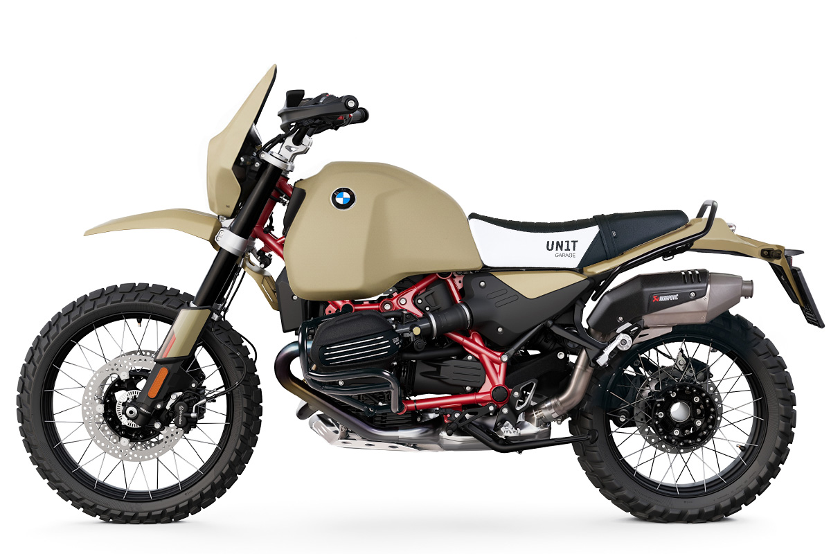 La partnership tra Unit garage ed Akrapovic ha portato alla creazione di un sistema di scarico che unisce la tecnologia di Akrapovič, il design di Unit garage e l'estetica ispirata alle moto BMW Dakar degli anni '80. Il silenziatore, realizzato a mano, in pregiata lega di Titanio, con cover in carbonio, pesa solo 2,1 Kg! Oltre al minor peso, lo scarico offre un miglioramento della potenza e della coppia, accompagnato da un sound più profondo e sportivo. La compatibilità con i supporti originali della moto rende il montaggio semplice, senza necessità di modifiche o rimappature della centralina.