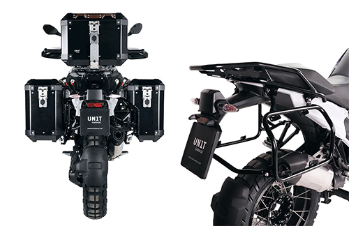 Nuovo kit telai laterali Unit Garage Codice: 4002 in colore Nero o Argento compatibile con valige originali in Alluminio BMW R 1200 GS, R 1250 GS o con borse in Alluminio Unit Garage modello Atlas.