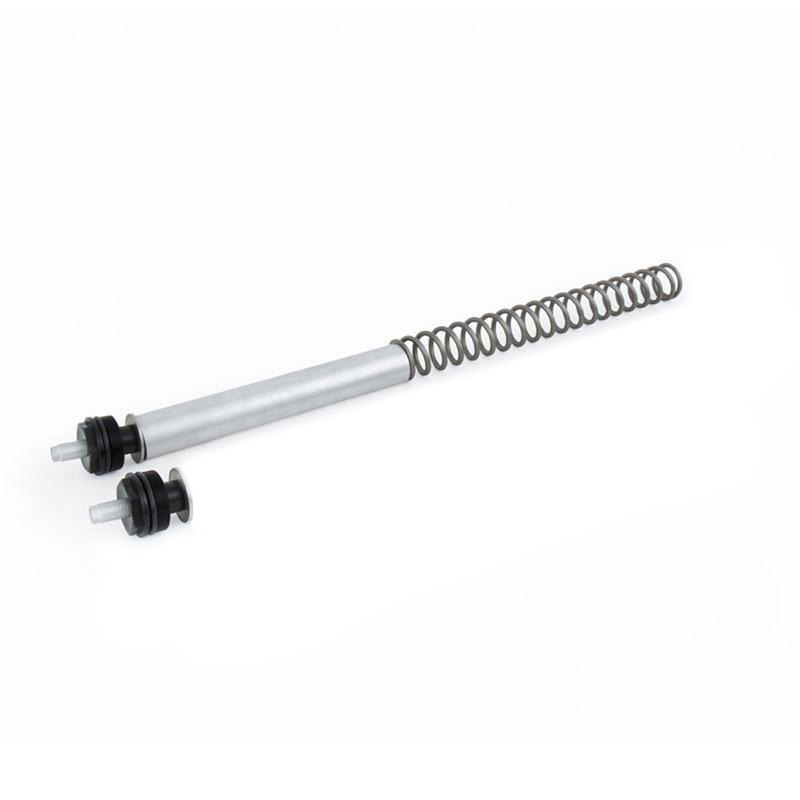 Questo Öhlins FSK 100 è un aggiornamento per piccole moto sportive e da strada con forcelle convenzionali. Il kit è progettato per migliorare la maneggevolezza, la sterzata e la frenata e offre al ciclista una sensazione sensibilmente migliorata in tutte le aree. Il kit comprende un tappo superiore sostitutivo e molle con velocità di rendimento più elevate. Il tappo superiore di ricambio fornisce anche una regolazione del precarico della molla esterna.