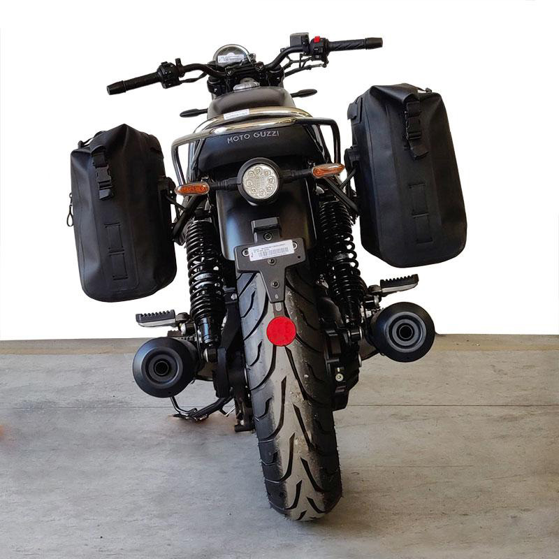 Disegnato sul telaio Moto Guzzi si integra perfettamente con il resto della moto ed è realizzato in acciaio trattato con finitura nero opaco a polveri epossidiche. Pronto per ospitare il nostro sistema di aggancio rapido, bello e minimal anche quando la borsa non è montata. Può essere usato comodamente con il passeggero a bordo.