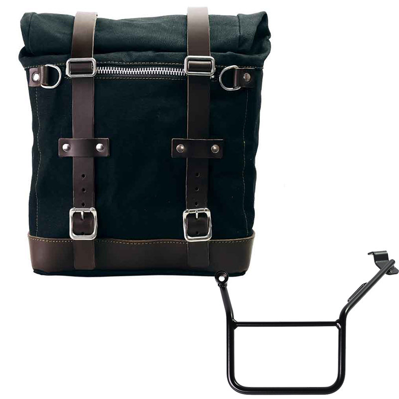 Deriva dalla nostra classica borsa U001, ma è molto più capiente ed ha all'interno un'anima removibile in materiale rigido che mantiene la forma anche a borsa vuota. Curata nei minimi dettagli con finiture in cuoio da 3 mm, semplice e pura come i materiali con cui è stata costruita. Si aggancia velocemente al nostro telaio portaborsa con il sistema a sgancio rapido già incluso e montato sul retro della borsa, che è provvisto di serratura per il bloccaggio sul telaio stesso. Può alloggiare all'interno anche un casco jet, ed è provvista di una capiente tasca frontale con cerniera accessibile dall'esteno. Per aprirla non è necessario sfilare le fibbie anteriori ma basta spostarle di lato, in modo molto veloce e pratico. Per proteggere ed organizzare il tuo bagaglio consigliamo di usare all'interno la Borsa Khali light multiuso 18L.