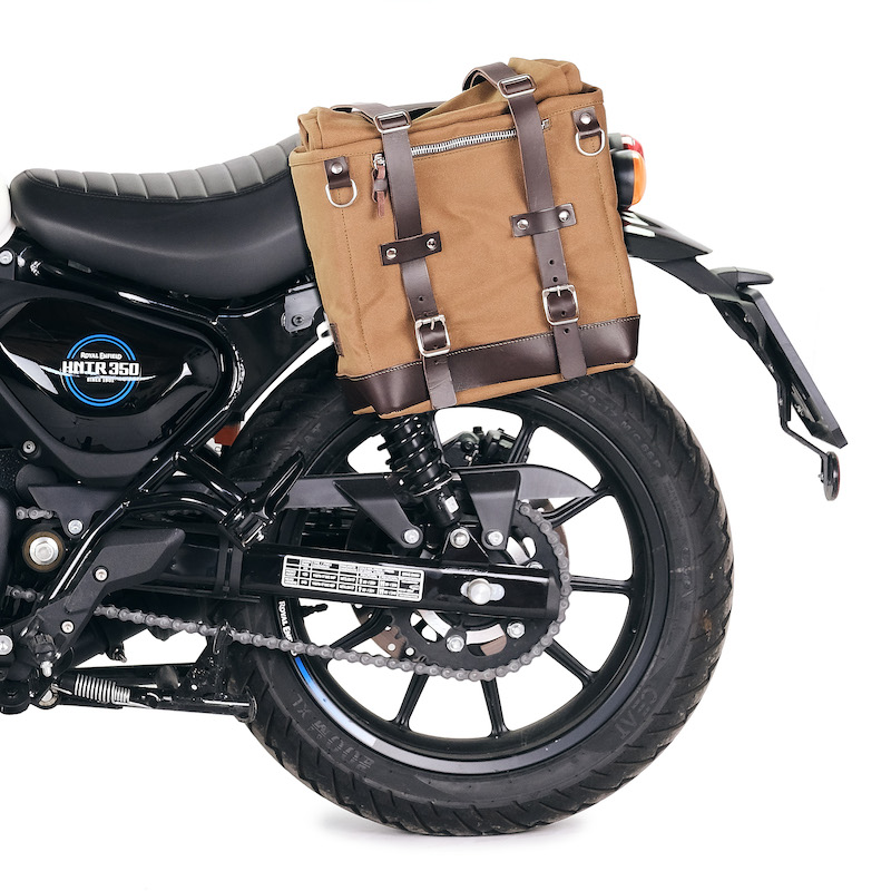 Deriva dalla nostra classica borsa U001, ma è molto più capiente ed ha all'interno un'anima removibile in materiale rigido che mantiene la forma anche a borsa vuota. Curata nei minimi dettagli con finiture in cuoio da 3 mm, semplice e pura come i materiali con cui è stata costruita. Si aggancia velocemente al nostro telaio portaborsa con il sistema a sgancio rapido già incluso e montato sul retro della borsa, che è provvisto di serratura per il bloccaggio sul telaio stesso. Può alloggiare all'interno anche un casco jet, ed è provvista di una capiente tasca frontale con cerniera accessibile dall'esteno. Per aprirla non è necessario sfilare le fibbie anteriori ma basta spostarle di lato, in modo molto veloce e pratico. Per proteggere ed organizzare il tuo bagaglio consigliamo di usare all'interno la Borsa Khali light multiuso 18L.