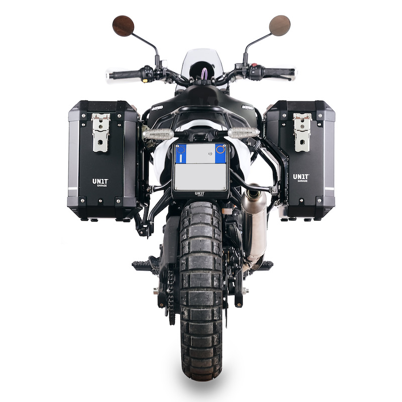 Questo set completo di telai realizzati in acciaio inox si integra perfettamente con il resto della moto. Viene fornito completo di kit di montaggio e viteria non sono necessarie modifiche. Si può montare sulla moto in combinazione con i nostri portapacchi (codice: 3805_BL) oppure con il portapacchi originale o gli accessori Royal Enfield. Possono essere usati comodamente con il passeggero a bordo.
