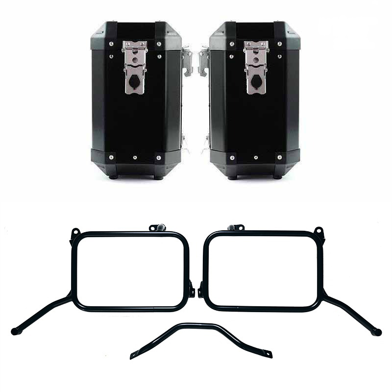 Questo set completo di telai realizzati in acciaio inox si integra perfettamente con il resto della moto. Viene fornito completo di kit di montaggio e viteria non sono necessarie modifiche. Si può montare sulla moto in combinazione con i nostri portapacchi (codice: 3805_BL) oppure con il portapacchi originale o gli accessori Royal Enfield. Possono essere usati comodamente con il passeggero a bordo.