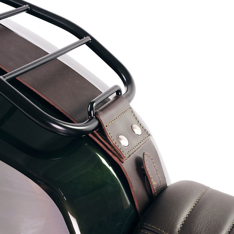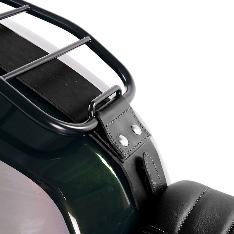 NB: le 2 fasce in cuoio per il fissaggio degli oggetti sul portapacchi non sono incluse e si possono acquistate a parte (disponibili in colore nero o marrone)