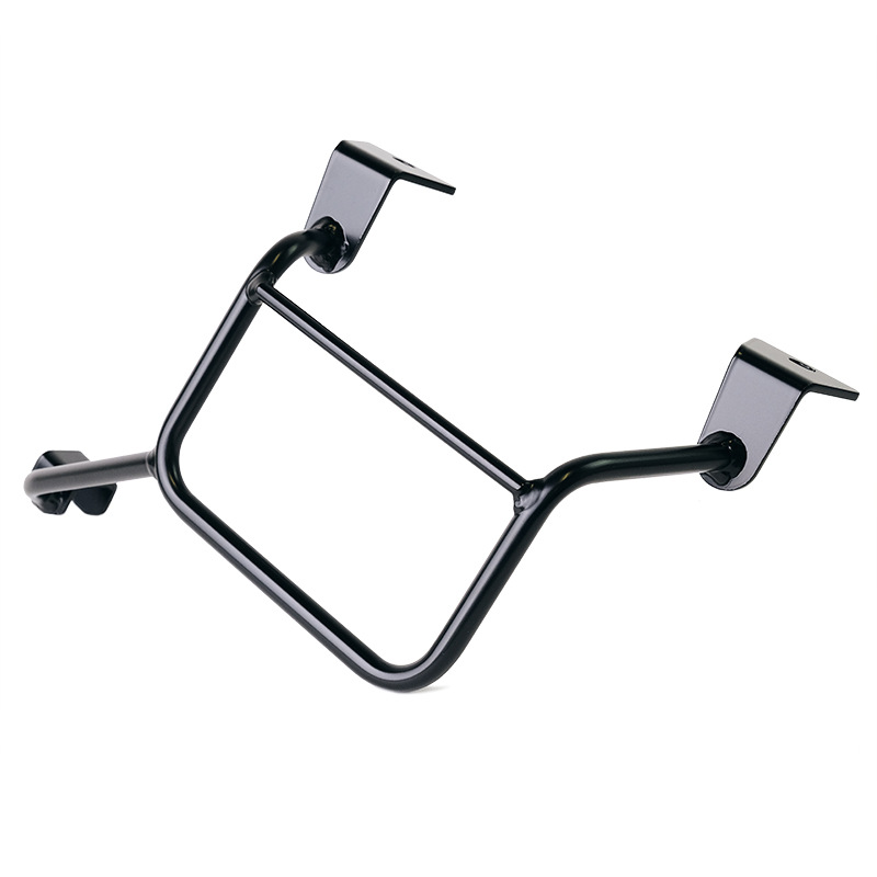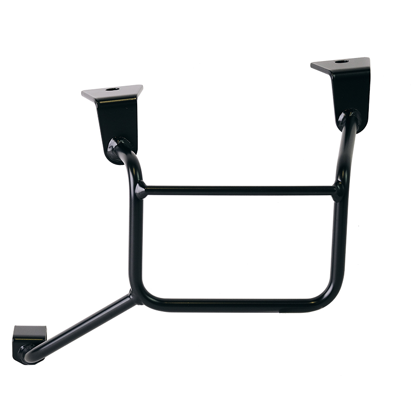 Telaio sinistro realizzato in acciaio trattato con finitura nero opaco a polveri epossidiche.