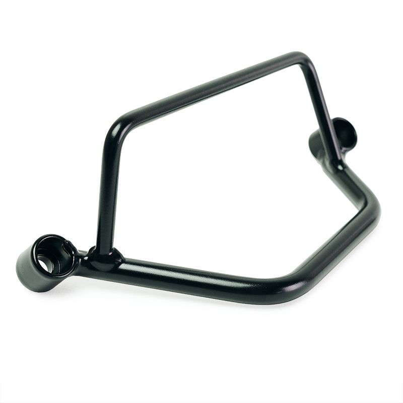 Telaio destro realizzato in acciaio trattato con finitura nero opaco a polveri epossidiche.