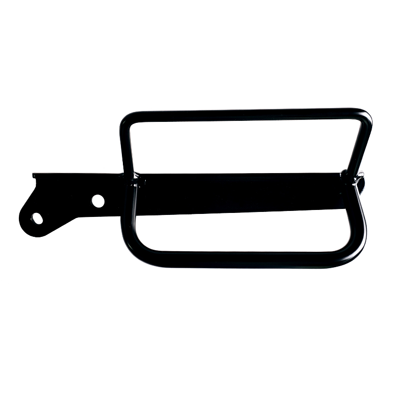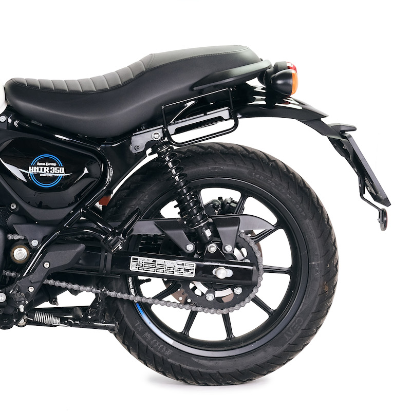 Disegnato sul telaio Royal Enfield si integra perfettamente con il resto della moto ed è realizzato in acciaio trattato con finitura nero opaco a polveri epossidiche. Pronto per ospitare il nostro sistema di aggancio rapido, bello e minimal anche quando la borsa non è montata. Può essere usato comodamente con il passeggero a bordo.