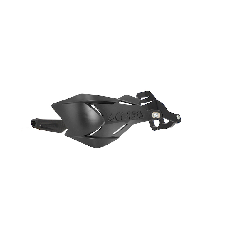 Paramani con barra in acciaio sovrastampata e bracciali in anticorodal per fissaggio paramano al manubrio, con staffa dedicata.