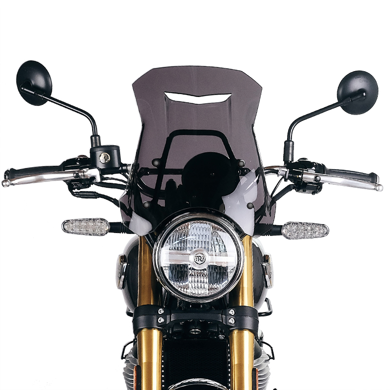 Completo di nuovo supporto e viteria, è perfettamente in stile con le linee del frontale. Realizzato in PMMA spessore 4mm (Acrilico). Si monta molto facilmente ed offre un'ottima protezione areodinamica. La feritoia frontale elimina le turbolenze, e il tubo di sostegno funge anche da supporto GPS o cellulare.