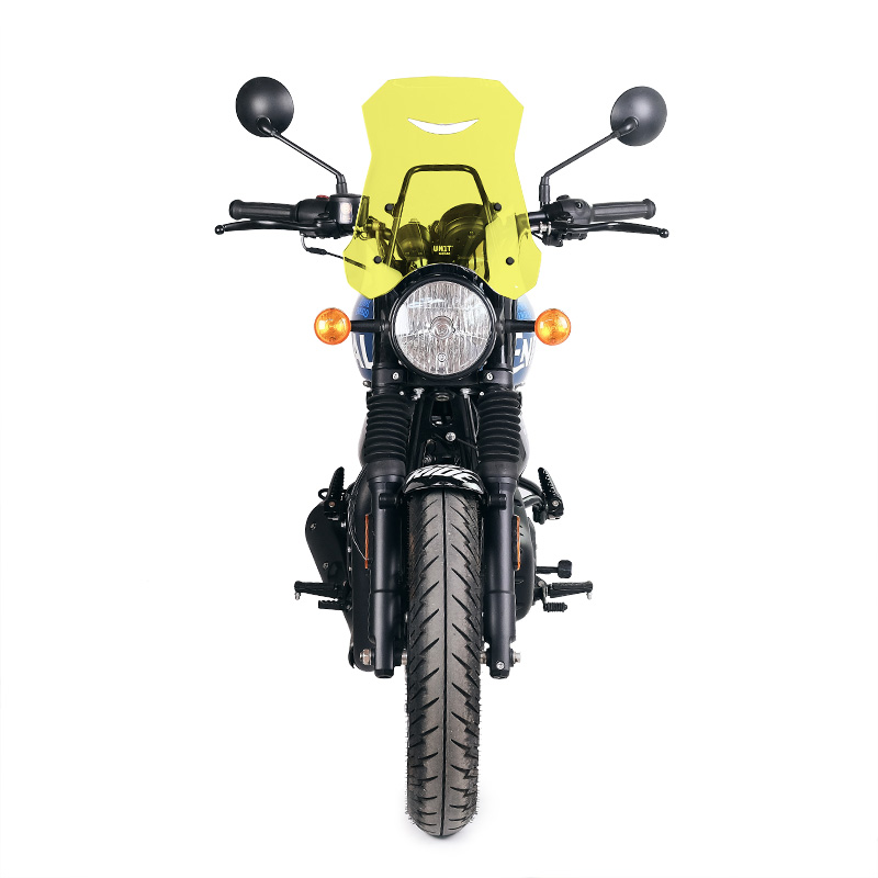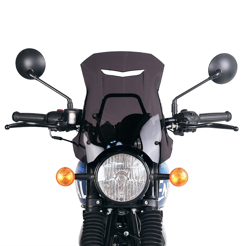 Completo di nuovo supporto e viteria, è perfettamente in stile con le linee del frontale. Realizzato in PMMA spessore 4mm (Acrilico). Si monta molto facilmente ed offre un ottima protezione areodinamica. La feritoia frontale elimina le turbolenze, e il tubo di sostegno funge anche da supporto GPS o cellulare.