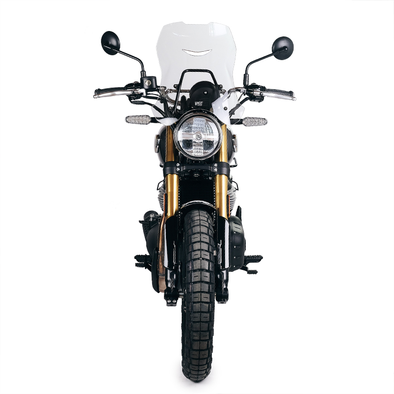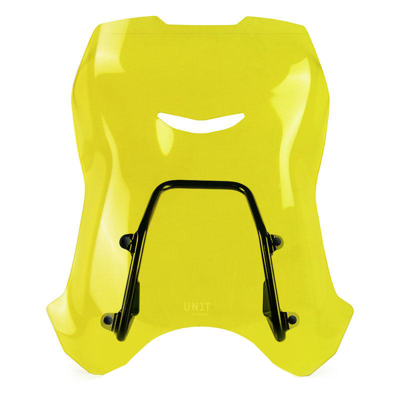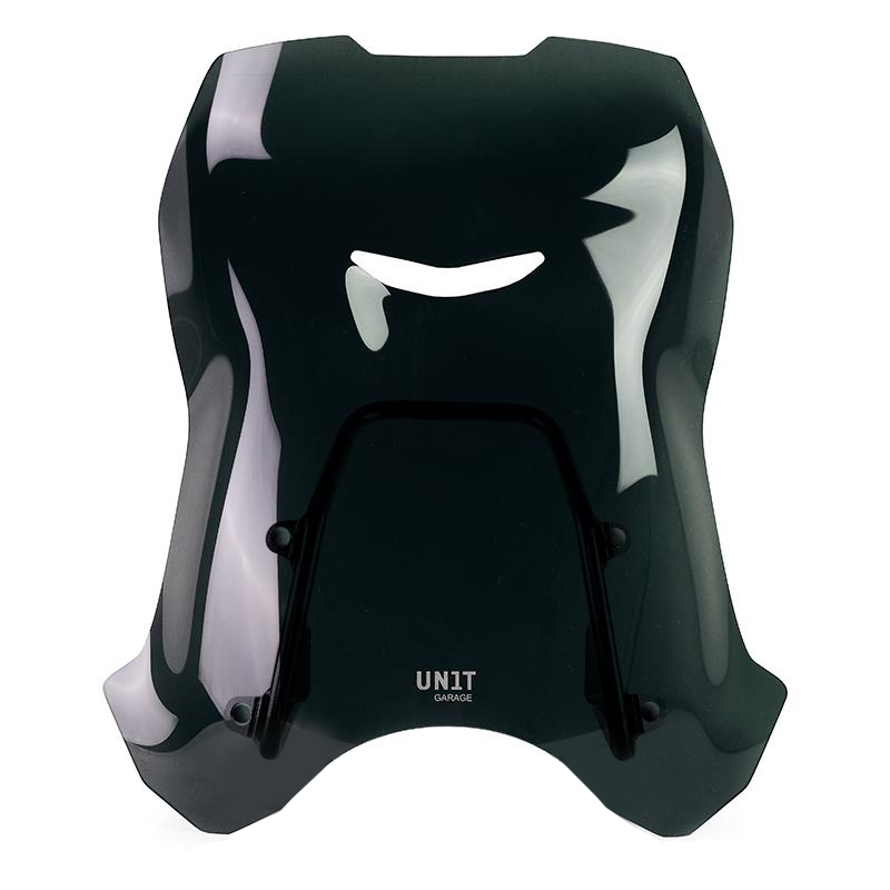 In questa versione maggiorata abbiamo implementato ulteriormente la protezione aerodinamica. Completo di nuovo supporto e viteria, è perfettamente in stile con le linee del frontale. Realizzato in PMMA spessore 4mm (Acrilico). Si monta molto facilmente. La feritoia frontale elimina le turbolenze, e il tubo di sostegno funge anche da supporto GPS o cellulare.