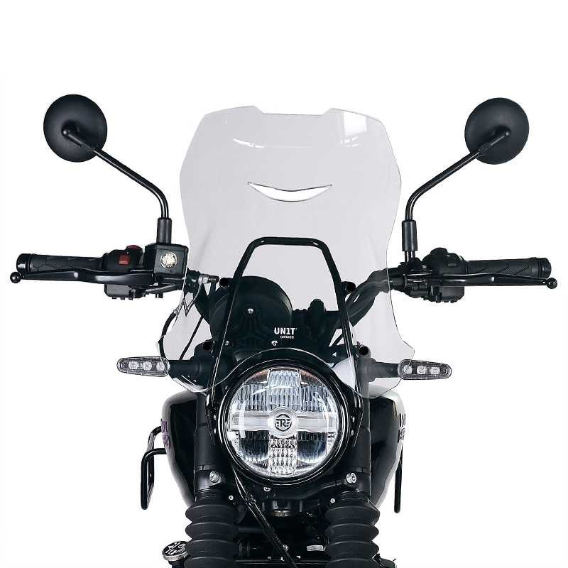 In questa versione maggiorata abbiamo implementato ulteriormente la protezione aerodinamica. Completo di nuovo supporto e viteria, è perfettamente in stile con le linee del frontale. Realizzato in PMMA spessore 4mm (Acrilico). Si monta molto facilmente. La feritoia frontale elimina le turbolenze, e il tubo di sostegno funge anche da supporto GPS o cellulare.