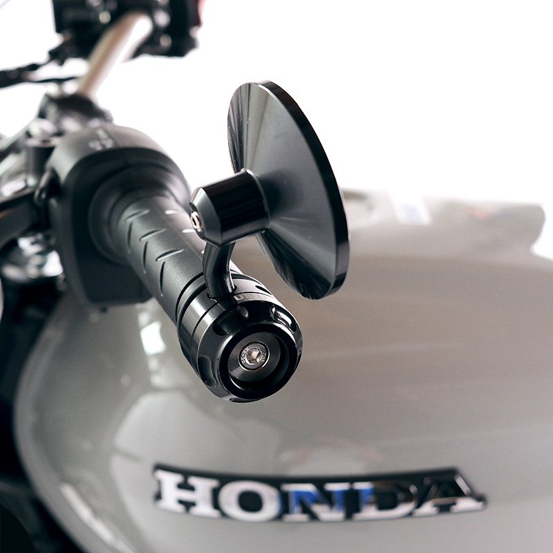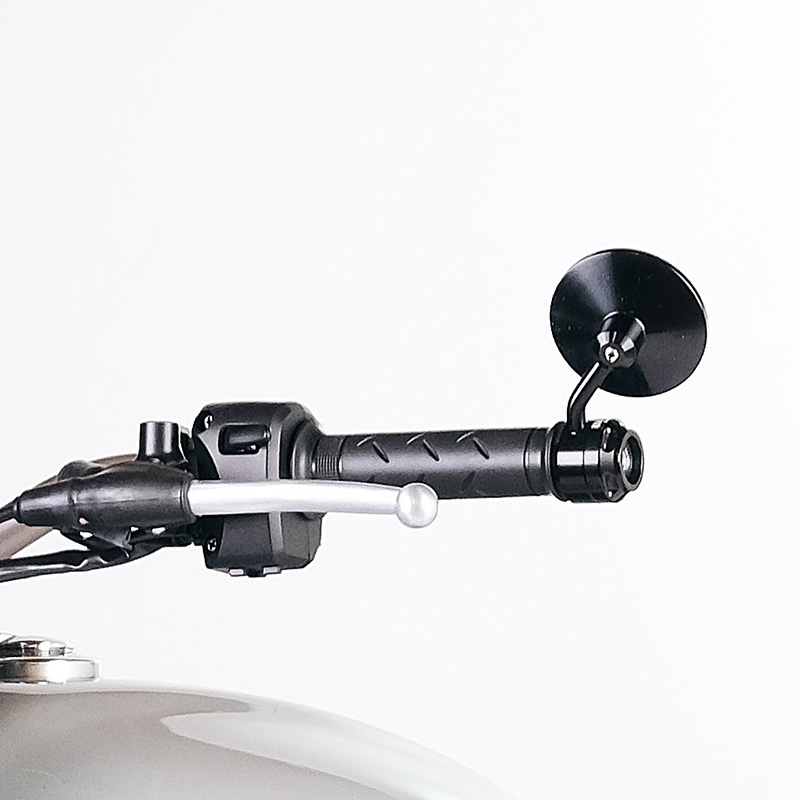 Ricavati a controllo numerico CNC, in questo caso vengono forniti in coppia. Gli specchi sono sempre un problema per il look della moto, che in questo caso abbiamo risolto in maniera molto minimal. Vengono forniti completi di terminali in alluminio e viti di fissaggio. Nel kit troverete due terminali in alluminio completi di viti e due specchi. Diametro specchi mm 72. Per un corretto e sicuro montaggio: serrare le viti con lo specchio in posizione, effettuare una prova su strada e poi serrare nuovamente le viti.