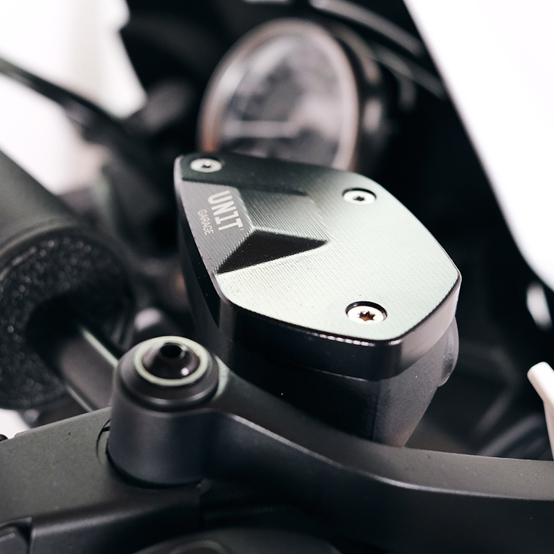 Coppia di tappi serbatoio olio freno e frizione ricavati dal pieno al cnc. Si montano senza nessuna modifica e sostituiscono quelli originali rendendoli più protettivi ed eleganti.