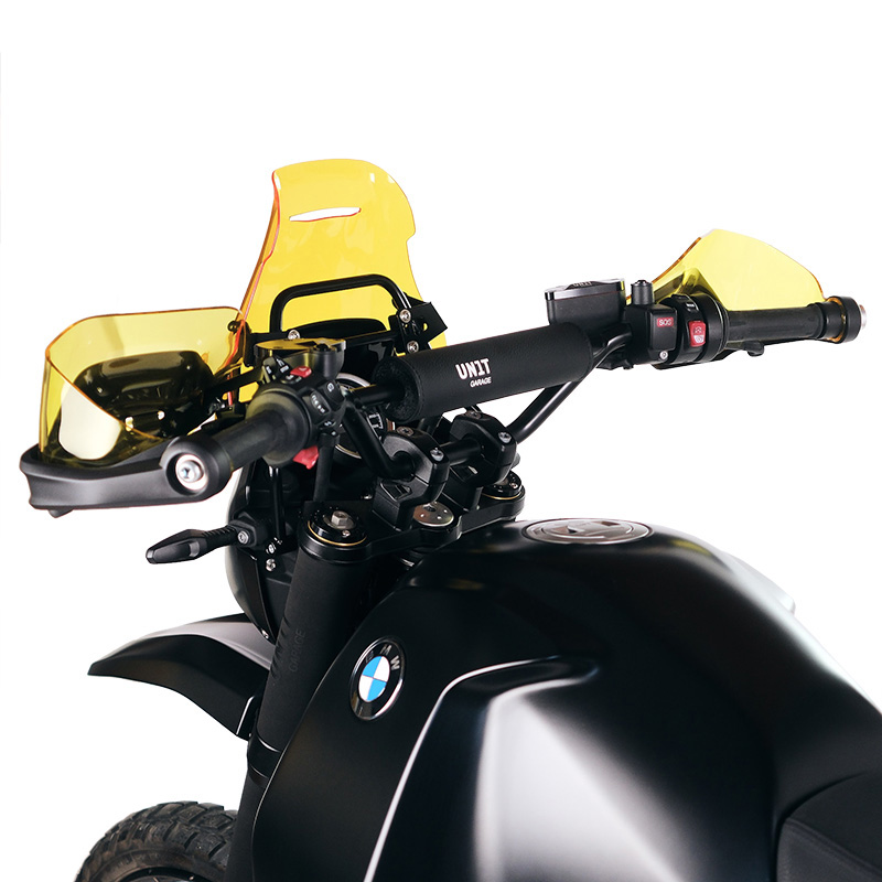 Per la BMW R12 G/S volevamo un manubrio "Old School" con traversino e diametro costante (22mm). La moto diventa veramente aggressiva con una posizione di guida più rilassante. Realizzato in Acciaio con finitura nero opaco a polveri epossidiche, viene fornito con tutto il necessario per il montaggio sui riser e comandi originali. Non necessita di alcuna modifica a cavi o tubi freno.