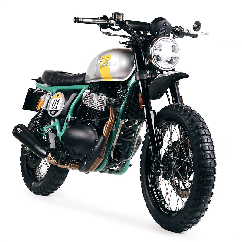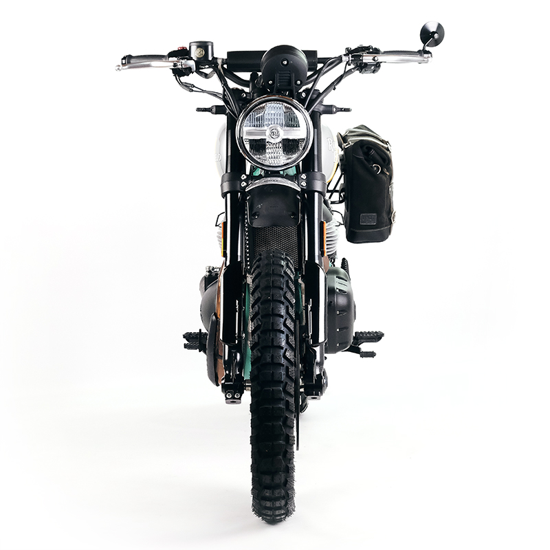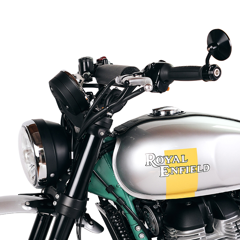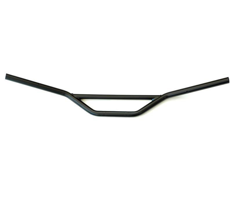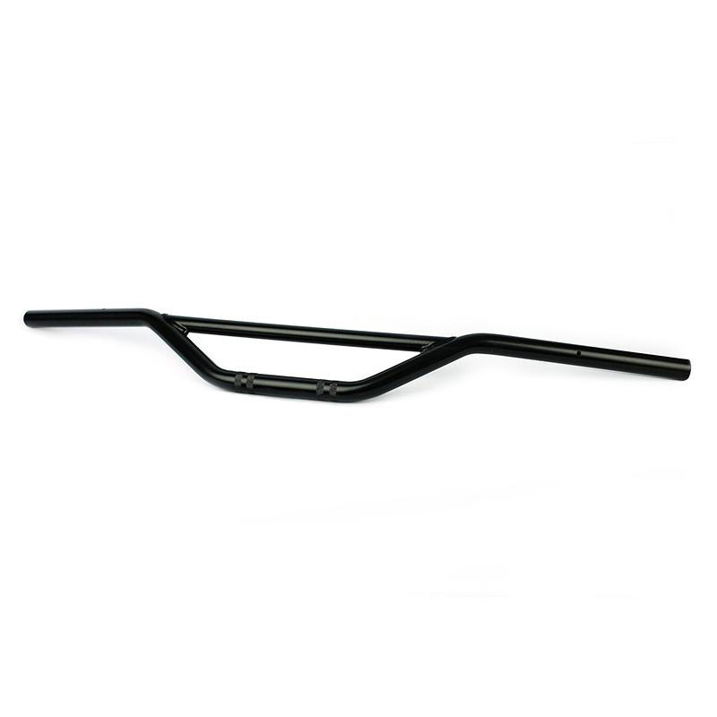 Manubrio in acciaio realizzato appositamente per la Royal Enfield Bear 650, si monta sui riser originali, tutti i cavi ( gas, freno, frizione e cablaggi ) non vanno sostituiti. E' predisposto con fori per il fissaggio dei blocchetti comandi originali e inserti filettati M6 per l'alloggiamento dei contrappesi.