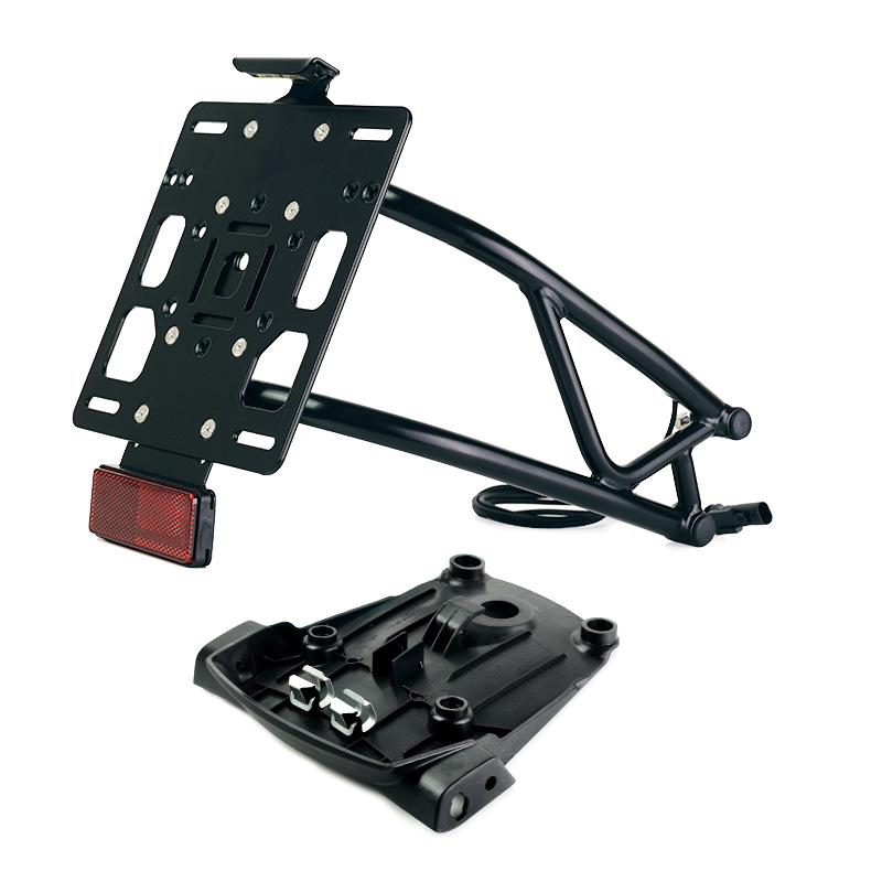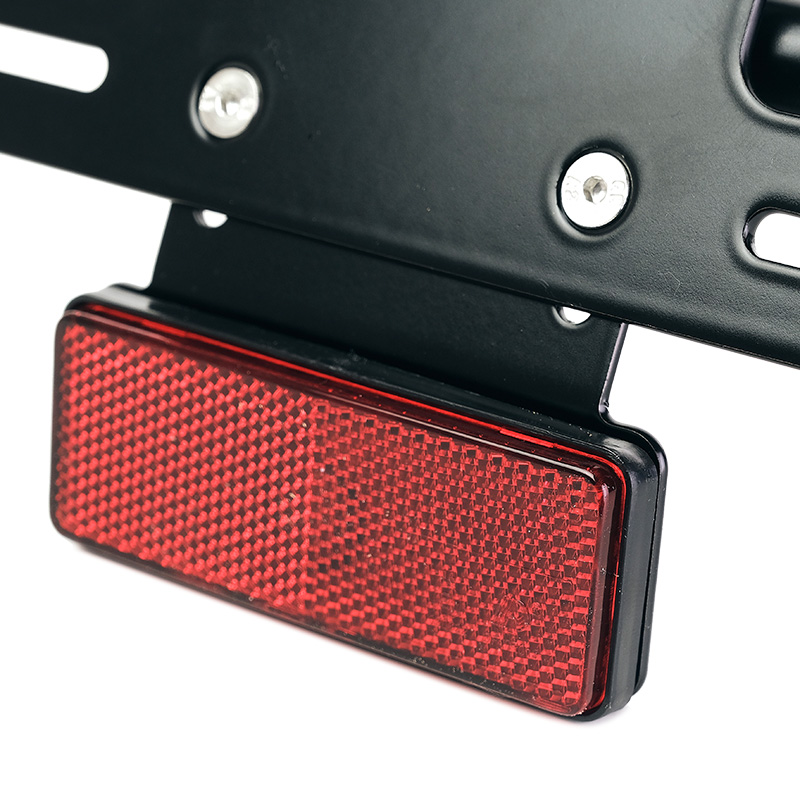 Realizzato in tubo di acciaio con finitura nero opaco a polveri epossidiche, viene fornito completo di porta targa in alluminio e catadiottro, disponibile in due versioni: modello EU e modello US. (Scegli il modello nel menù a tendina).