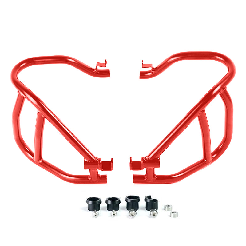 Realizzata in acciaio con tubo da mm 25 spessore mm 2 trattato con vernici a polveri ad alta resistenza. La maggior parte dei lavori di manutenzione può essere eseguita senza lo smontaggio della barra. Molto belle ed eleganti, definiscono in modo perfetto le linee della moto. Vengono fornite di tutto il necessario comprese le istruzioni di montaggio.