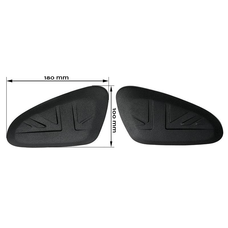 Coppia di protezione ginocchia in gomma. Con adesivo forte, pronto per il montaggio. Completa il look del serbatoio e protegge le ginocchia nell'uso fuoristrada.