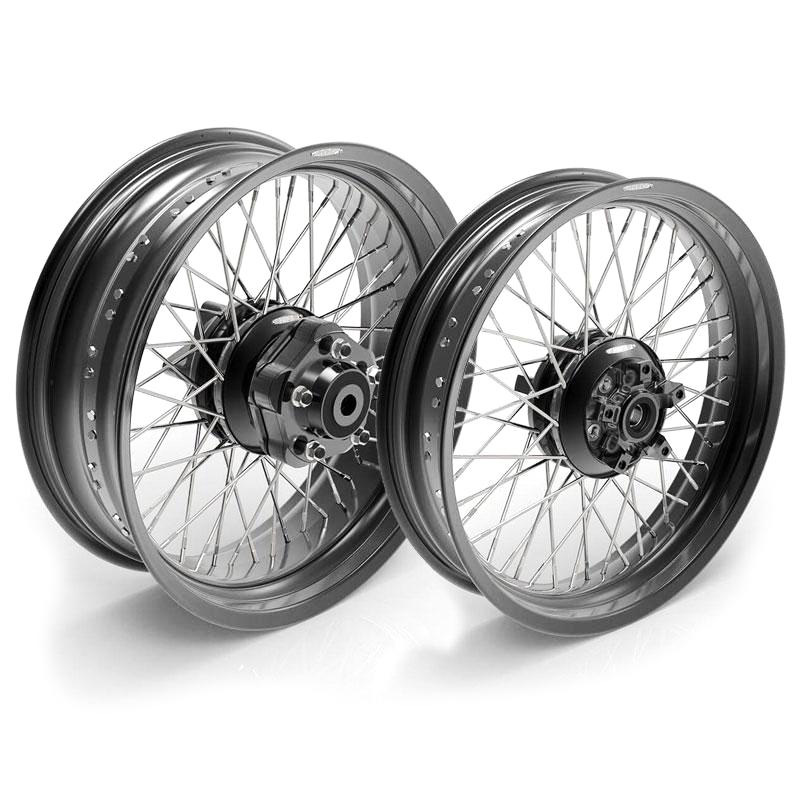 Disegnate e realizzate a mano in Italia: un concentrato di tecnica e manualita che rendera' la vostra moto unica ed esclusiva. Coppia di ruote ant/post totalmente intercambiabili con le ruote originali e compatibili con la moto di serie senza dover cambiare nessun componente originale. Si riutilizzano i vostri attuali Dischi freno, Viteria originali e pneumatici.